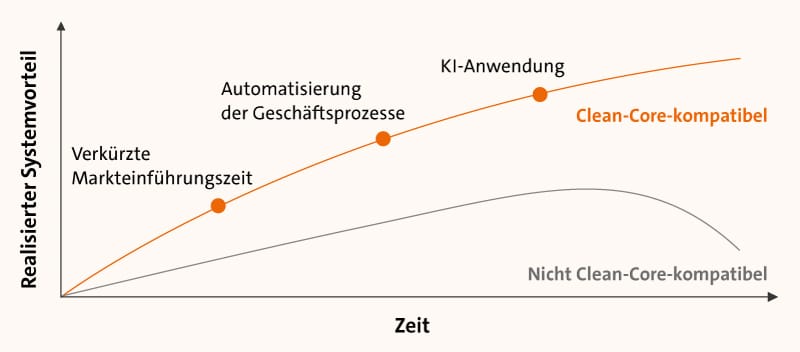Nicht Clean-Core-konforme Systeme hingegen stagnieren oder verlieren langfristig an Effizienz.