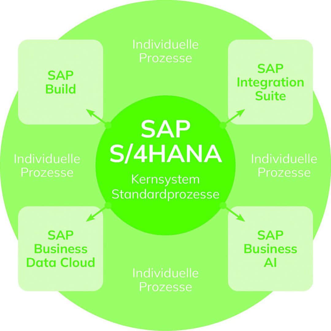 Unter SAP Build bündelt SAP ihre Low-Code-/No-Code-Tools für App-Entwicklung, Automatisierung und visuelle Prozessmodellierung. Hier entstehen individuelle Anwendungen oder Workflows, die spezifische Anforderungen abbilden – sei es eine App für Produktionsmitarbeiter, ein Kundenportal oder ein Add-on für die Supply Chain. Der Vorteil: Diese Lösungen lassen sich schnell entwickeln und flexibel erweitern, ohne in den S/4-Kern einzugreifen.