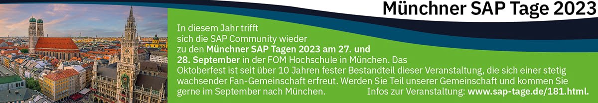 In diesem Jahr trifft sich die SAP Community wieder zu den Münchner SAP Tagen 2024 am 25. und 26. September in der FOM Hochschule in München. Das Oktoberfest ist seit über 10 Jahren fester Bestandteil dieser Veranstaltung, die sich einer stetig wachsenden Fan-Gemeinschaft erfreut. Werden Sie Teil unserer Gemeinschaft und kommen Sie gerne im September nach München.
