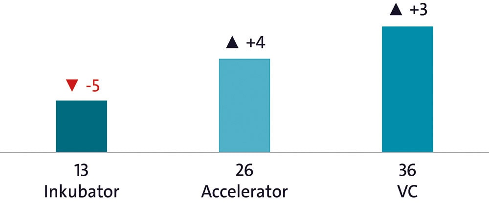 Die Studie macht deutlich: Auf eher marktreife Start-ups fokussierte Programme wie Acceleratoren, Venture Capital und Kooperationsprogramme setzen den Ton. Die Trendthemen künstliche Intelligenz (KI), Health & Life Sciences und Circular Economy dominieren.