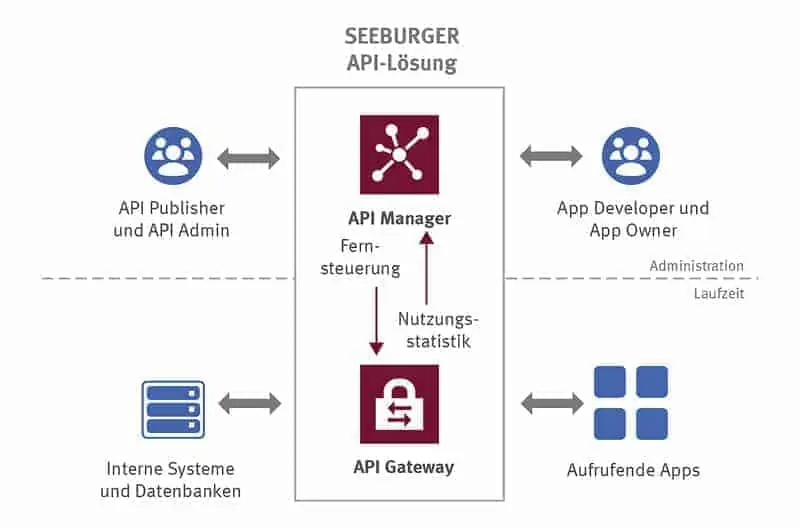 Esto abarca la administración/organización, el uso con gestión y el control de las API más variadas y diversas. Y ello sobre la base de soluciones de sistema estándar o plataformas de gestión de API.