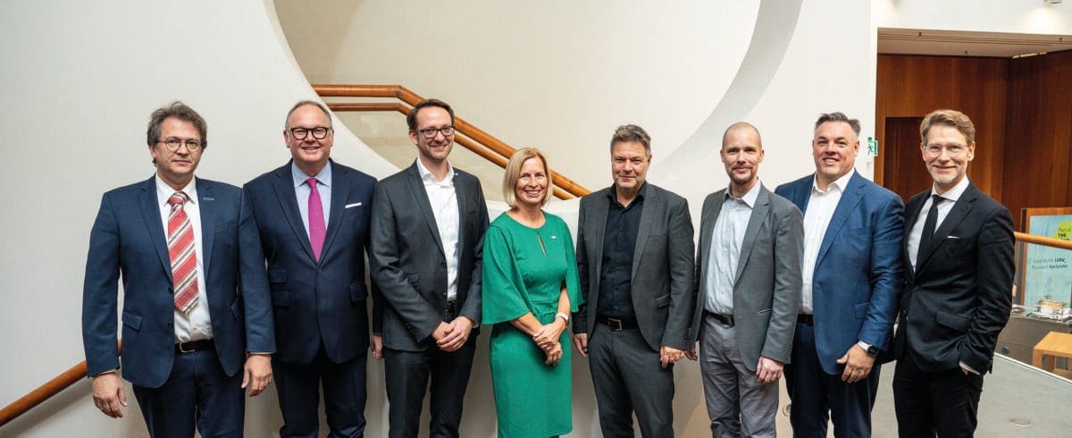 De izquierda a derecha: Utz-Uwe Haus (Director de HPE HPC/AI EMEA Research Lab), Harald Christ (Presidente de Christ und Company), Thomas Saueressig (Miembro de la Junta Directiva de SAP), Tanja Rückert (Directora Digital de Robert Bosch), Robert Habeck (Ministro Federal de Economía y Vicecanciller), Jonas Andrulis (Director General y fundador de Aleph Alpha), Rolf Schumann (Codirector General de Schwarz Digits), Florian Stegmann (Jefe de la Cancillería del Estado), Fuente: Mark Bollhorst.
