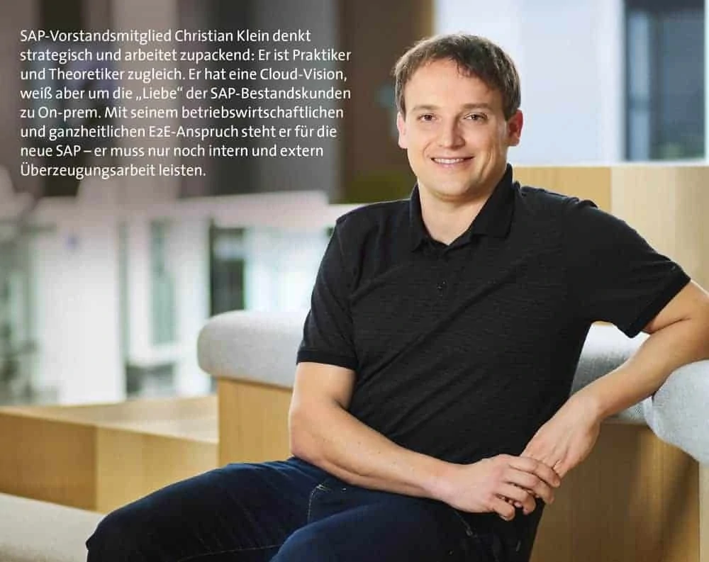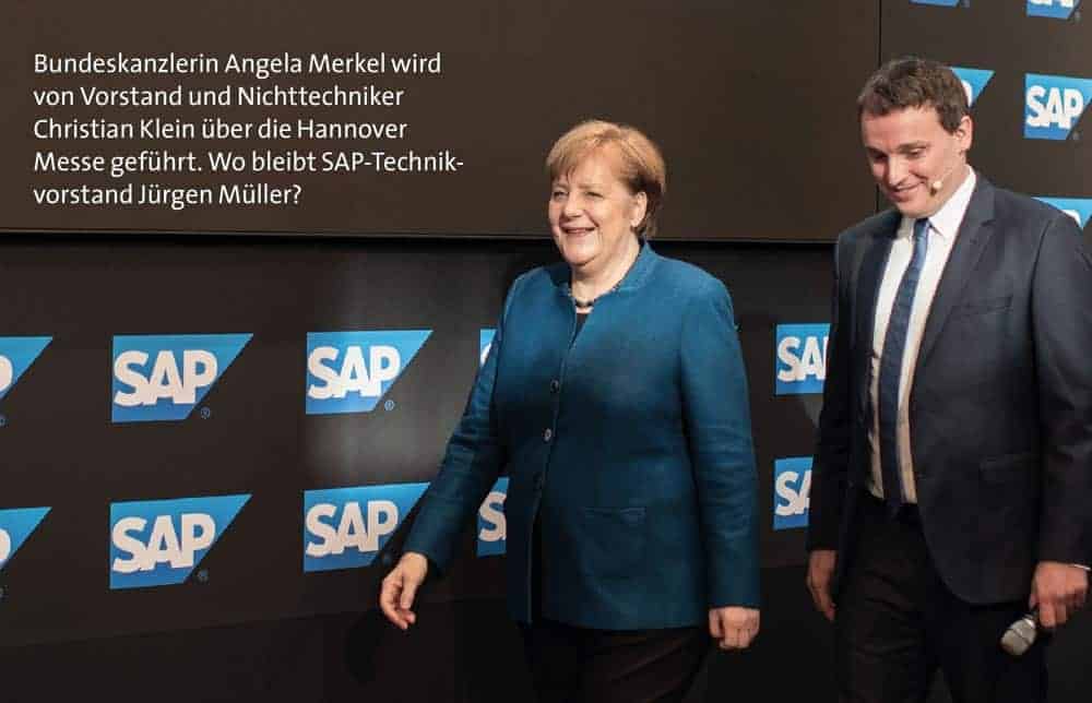SAP es un sistema universal empresarial y estandarizado, y su CEO, Christian Klein, es su polímata: en Hannover, ofrece a la canciller alemana Angela Merkel una visita al stand de SAP en la feria, en Walldorf inaugura un centro SAP IoT con Peter Altmaier, ministro federal de Economía y Energía, y "aparte" se ocupa de la integración de las adquisiciones de SAP en la nube.